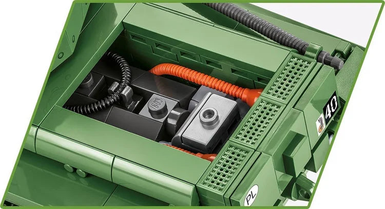 The WWII Cromwell Mk. IV tank "HELA" featuring the exact markings of the famous command tank of general Stanisław Maczek from the 1st Armored Division (Black Devils) of the Polish Armed Forces fighting alongside the Allies. Carefully reproduced from 544 bricks, the set was developed in a 1:35 scale matching our figures. All elements of historical markings and details are high-quality prints! There are no stickers in the set. The tank's functionalities include: an opening hatch, access to the engine, a movable turret, a rotating cannon and a working tracks. There is also a plate with the name of the famous tank.