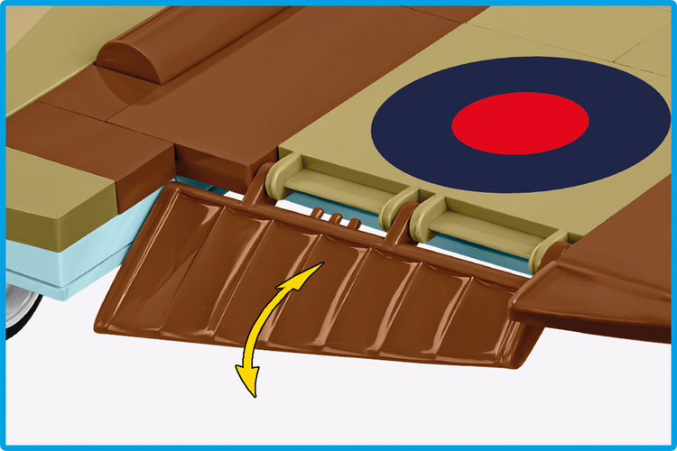 The model from COBI with the inscription "Mary Rose" on the side is inspired by an authentic machine from World War II. The Spitfire Mk.IX with serial number EN199, currently located in the Malta Aviation Museum, is painted in desert camouflage, which refers to its service in 81 Squadron in North Africa in 1943. The aircraft was piloted by Wing Commander R. Berry, and his initials were used as code letters on the machine. EN199 has a rich operational history, participating in operations in both North Africa and Malta.