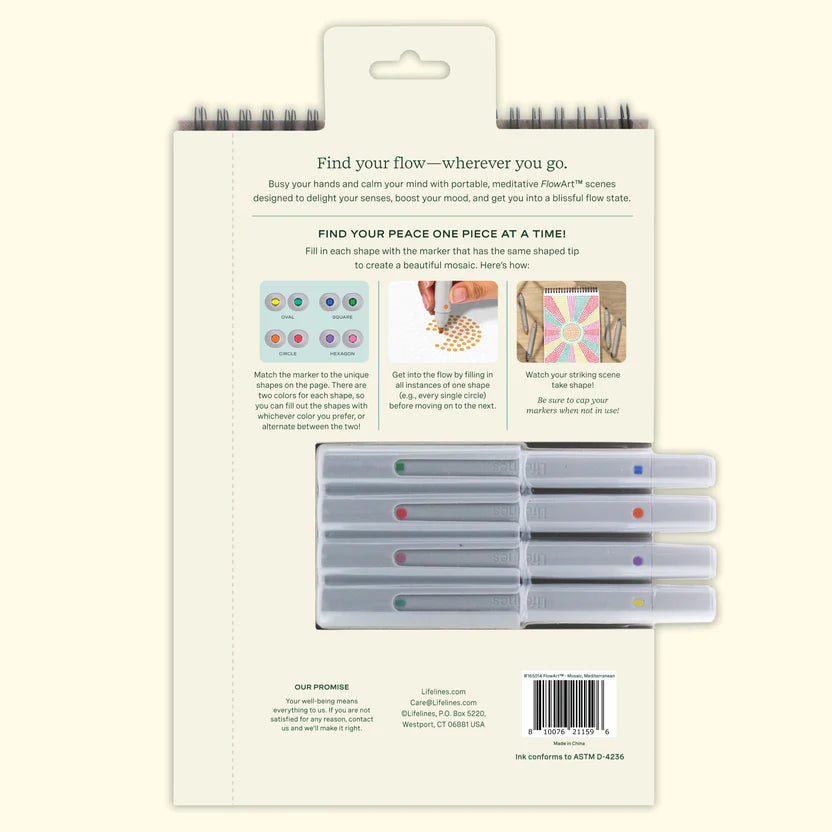 Lifelines FlowArt Pads are guided art meditations designed to help you achieve a calming flow state. Each scene is thoughtfully crafted to encourage repetitive, relaxing movements, promoting mindfulness and reducing stress.