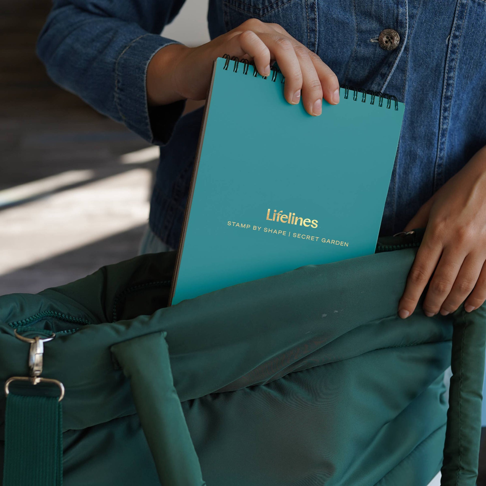Lifelines FlowArt Pads are guided art meditations designed to help you achieve a calming flow state. Each scene is thoughtfully crafted to encourage repetitive, relaxing movements, promoting mindfulness and reducing stress. Stamp by Shape includes 20 meditative scenes and four double-sided "shape" markers in a detachable storage tray. Each marker has a uniquely shaped tip—oval, square, hexagon, or circle. Match each marker to the corresponding shape on the page to create a stunning, original mosaic. Compact and portable, this pad is perfect for calming your mind on-the-go, unwinding before bed, or taking a work or study break to de-stress.