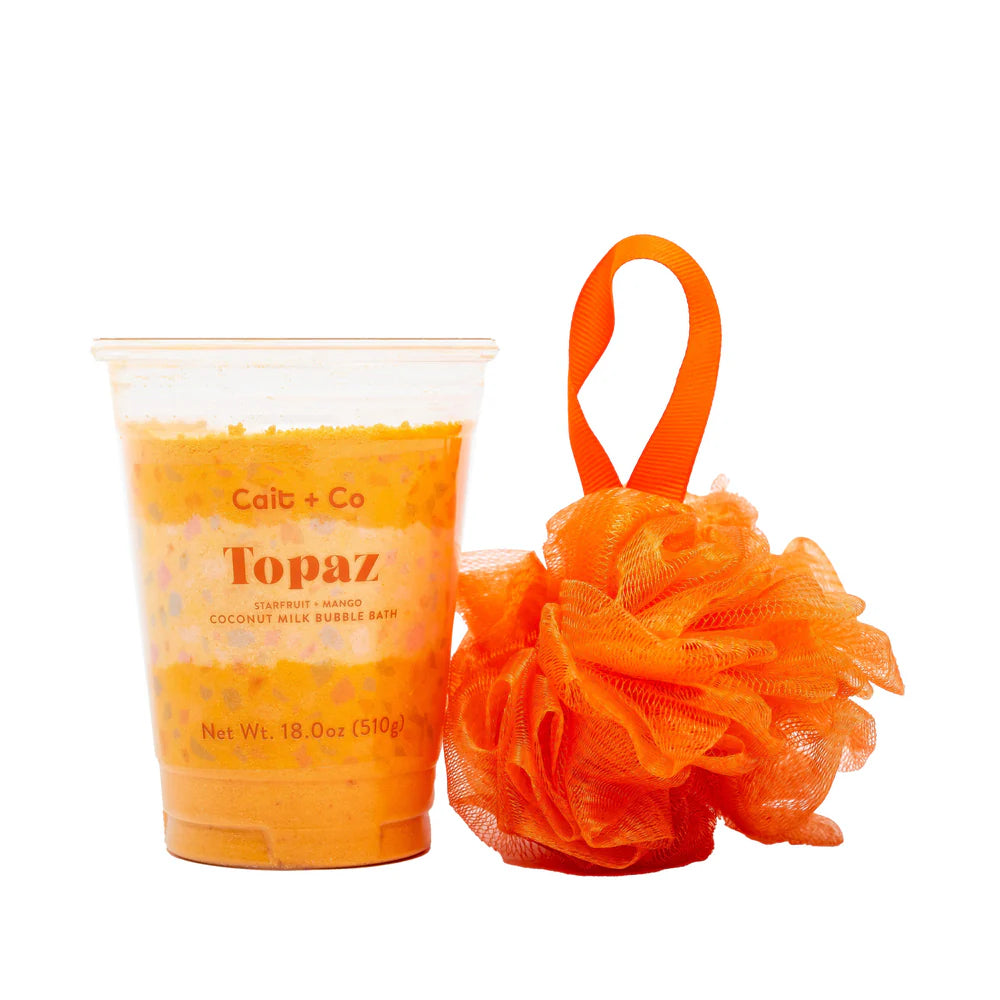 These captivating coconut milk bubble baths are presented in charming milkshake-inspired cups, for a delightful twist to your relaxation routine. Topped off with a plush shower pouf, Cait + Co Milkshakes are sure to add a dash of playfulness to your tub time. Our gentle coconut milk bubble bath is made from plant-based oils. It does not contain any harmful chemicals, preservatives, or parabens that are often found in commercial products. It’s mild enough for all skin types and can be used daily.