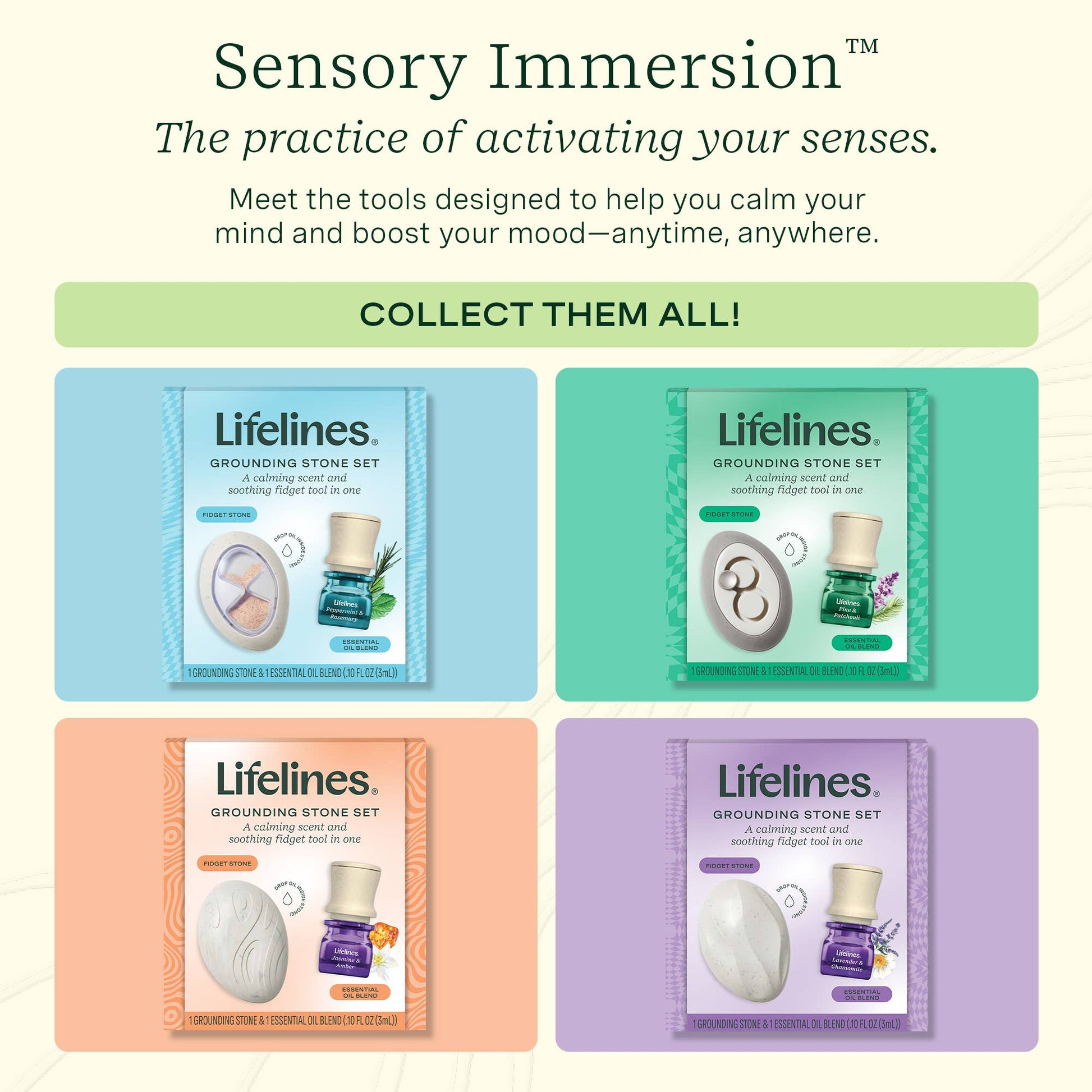 Lifelines Grounding Stone Gift Set: Combine the calming sensory act of fidgeting with scent to help you feel more present and focused. Includes 1 Grounding Stone and 1 Crisp Mountain Air Essential Oil Blend. Makes a thoughtful holiday gift and feel-good stocking stuffer!