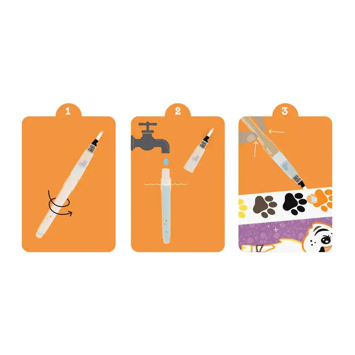 16 unique illustrated cards built built-in watercolor paint palette, activated by the included mess free refillable water brush. The pull-out, high quality watercolor card is perfect for displaying and preserving masterpieces. Magnetic closure on the set allows for neat pack-up at the end of the day. Recommended for ages 4-7 years